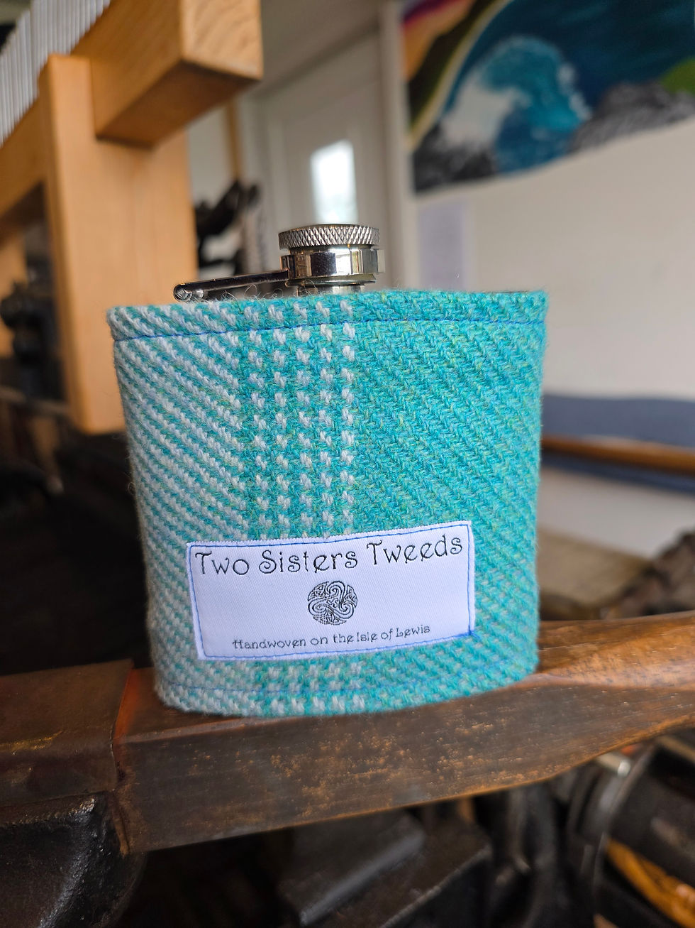 Covered in our handwoven Two Sisters Tweed or Harris Tweed these stainless steel hipflasks are perfect for a wee dram!